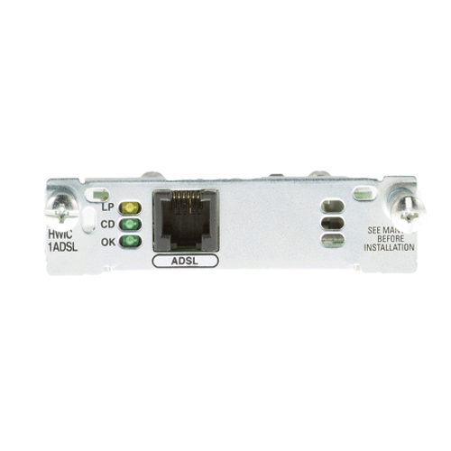 برای دریافت اینترنت در بستر دیجیتال از ISP ها، که اصطلاحا ADSL نامیده می شود نیاز به کارت سیسکو HWIC-1ADSL داریم. این کارت دارای یک پورت RJ11 است که به واسطه ی آن می توانیم کانکشن اینترنت را از طریق کابل تلفن دریافت کنیم. در سایت های معتبر می توانید ویژگی های بیشتری از این محصول ببینید.