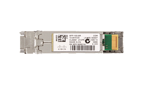ماژول سیسکو مدل SFP-10G-SR برای انتقال دیتا از طریق فیبر نوری مالتی مود با قطر بین 50 و 62.5 میکرومتر با پهنای باند 10 گیگا بیت بر ثانیه است که در تمامی دستگاه های سیسکو با اسلات SFP+ قابل استفاده است. این ماژول می تواند در دامنه ی 1310 نانومتری فعالیت کند که در نهایت منجر به ارسال سیگنال در حالت مالتی مود تا 1 کیلومتر شود.